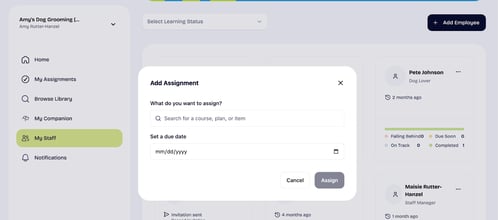 Ready to assign new training to your team members in The Dog Gurus? There are a few different ways to assign learning to your team; see below for a few simple steps on how to get started.