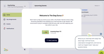 Your dashboard will greet you with a welcome message and direct you to your first course.