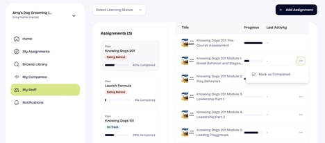 If a team member has previously completed a Dog Gurus learning plan, you can manually mark it as complete: